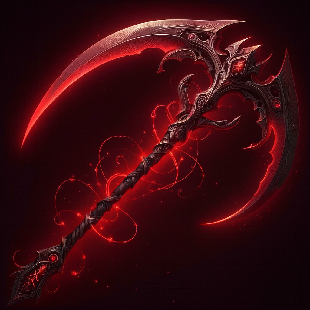 • Leírás: A kasza pengéje továbbra is holdfényből és csillagok ragyogásából született, de most az éjszaka sötét energiája is átjárja, amely minden lendítéssel elszabadítja a halál szelét. Az ősi rúnák a penge mentén ragyogó és baljós necrotikus aurát árasztanak, amelyet úgy mondanak, hogy a világokon túli hatalmak alkottak.